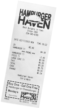 - Receipt Printer Generates Receipt, Soft Check, and/or